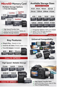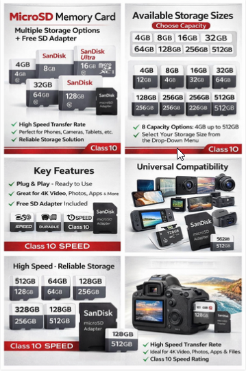 • 1 × SanDisk Micro Memory Card (Selected Capacity)